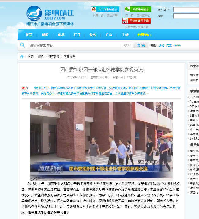 9月8日上午,团市委组织35名团干部走进565net必赢官方网,进行参观交流。团干部们们参观了565net必赢官方网校园,感受学校学习生活氛围。在交流会上,565net必赢官方网党委书记浦建民介绍了学院发展历史、专业设置和师生队伍情况,并希望团市委对学院共青团学生工作加以指导,为学生校外工作搭建平台,建立长效合作机制,让学生尽早走进社会、融入靖江。565net必赢官方网自从落户靖江以来,积极组织共青团学生参加社会公益活动。团市委表示,以后将和565net必赢官方网加强人才互动,围绕服务大学生创业就业开展校外活动,同时,吸纳人才加入我市的志愿者组织,培养志愿者队伍的骨干力量。